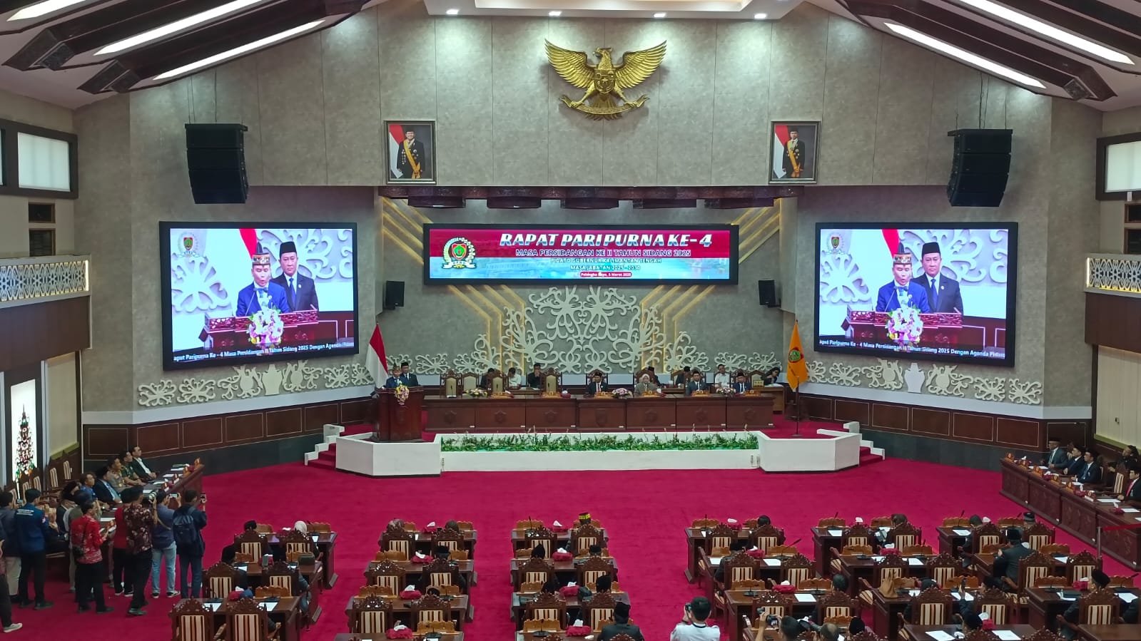PALANGKA RAYA – Gubernur Kalimantan Tengah (Kalteng) Agustiar Sabran bersama Wakil Gubernur Edy Pratowo menyampaikan pidato dan memaparkan visi-misi pembangunan Kalteng dalam Rapat Paripurna ke-4 Masa Persidangan II Tahun Sidang 2025. Acara ini berlangsung di Ruang Rapat Paripurna DPRD Kalteng, Rabu 5 Februari 2025.