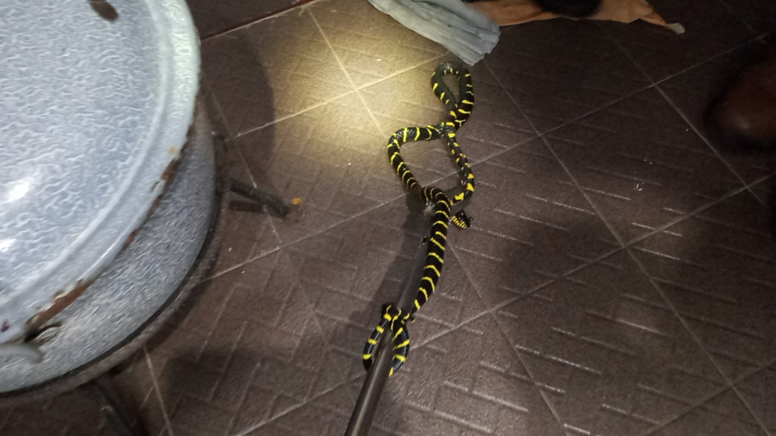 Ular berwarna belang dan panjang sekitar satu meter itu ditemukan bersembunyi di bawah rak piring saat pemilik rumah hendak beraktivitas sekitar pukul 09.00 WIB. Karena lokasi dapur cukup terang, sosok ular itu terlihat jelas, membuat penghuni rumah langsung menghubungi Tim Rescue Dinas Pemadam Kebakaran (Damkar) Kota Palangka Raya.