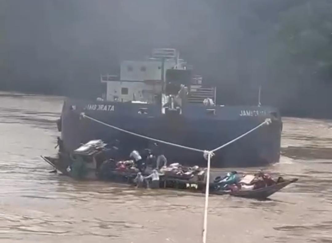 Dalam video yang viral di media sosial, terlihat sebuah perahu kecil yang diduga tengah mengalami mati mesin di tengah sungai sebelum akhirnya dihantam keras oleh kapal tongkang berukuran besar. Perahu itu langsung hilang dari pandangan, diduga karam akibat benturan hebat dan seluruh penumpang terpaksa melompat ke sungai untuk menyelamatkan diri.
